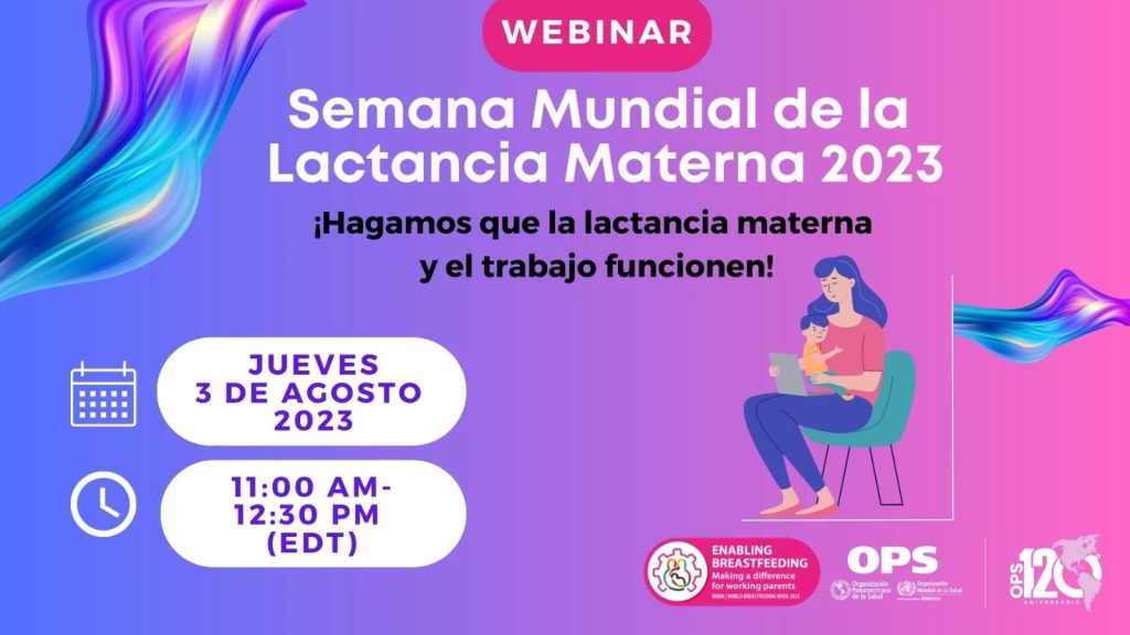 La Organización Panamericana De La Salud Refuerza su apoyo con el seminario virtual HAGAMOS QUE LA LACTANCIA MATERNA Y EL TRABAJO FUNCIONEN que se realizará de manera gratuita el jueves 3 de agosto por medio de: https://paho-org.zoom.us/webinar/register/WN_J6oaUVv2Q4OaHi_mKnPj0w#/registration a partir de las 11:00 de la mañana.
